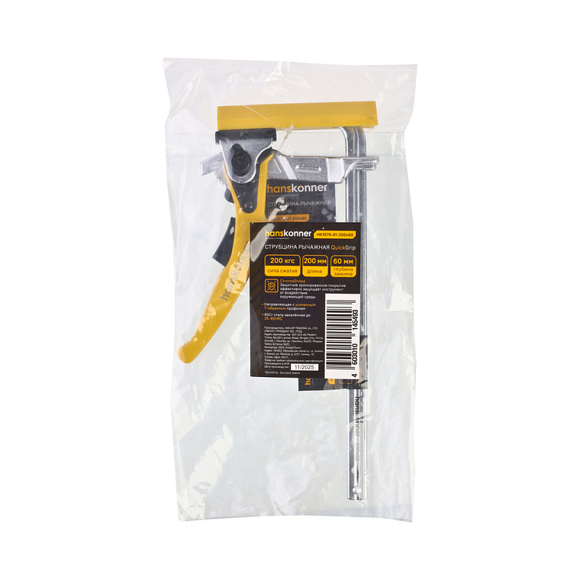 Струбцина 200X60мм, 40CR сталь, хромированные, hanskonner