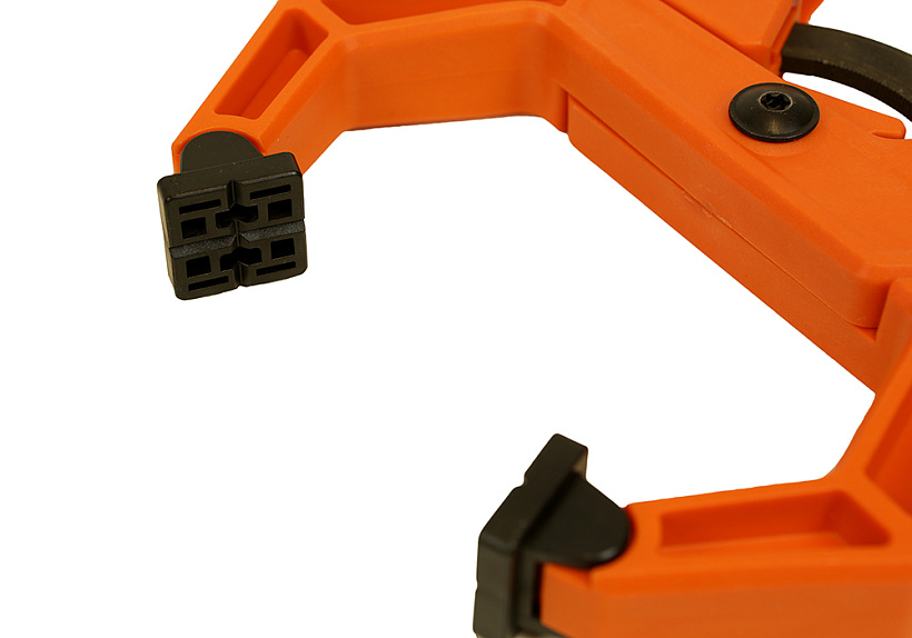 Вывернная геометрия зубьев на храповом механизме позволяет держать усилие зажима на стабильном уровне.