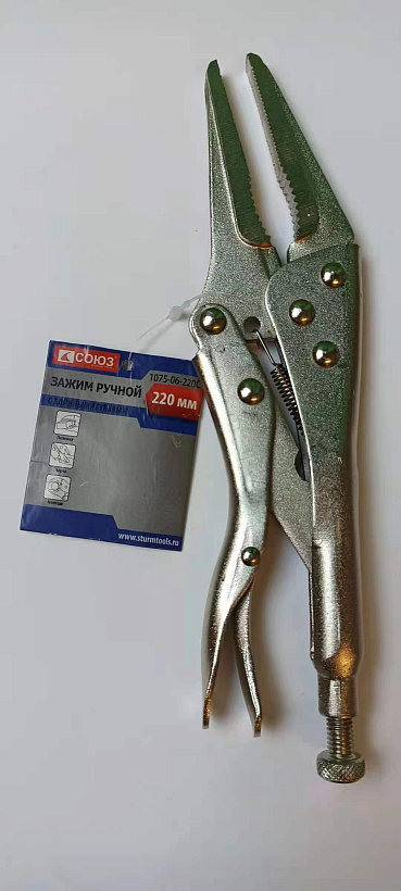 Зажим ручной, длинные губки, 220 мм, СОЮЗ