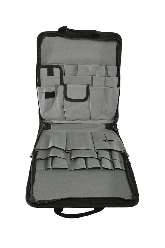 Съёмный органайзер во внутреннем отделе сумки помогает зонировать пространство для инструмента, а также сам снабжен карманами. Возможность его извлечения позволяет полностью контролировать эргономику хранения инструмента.