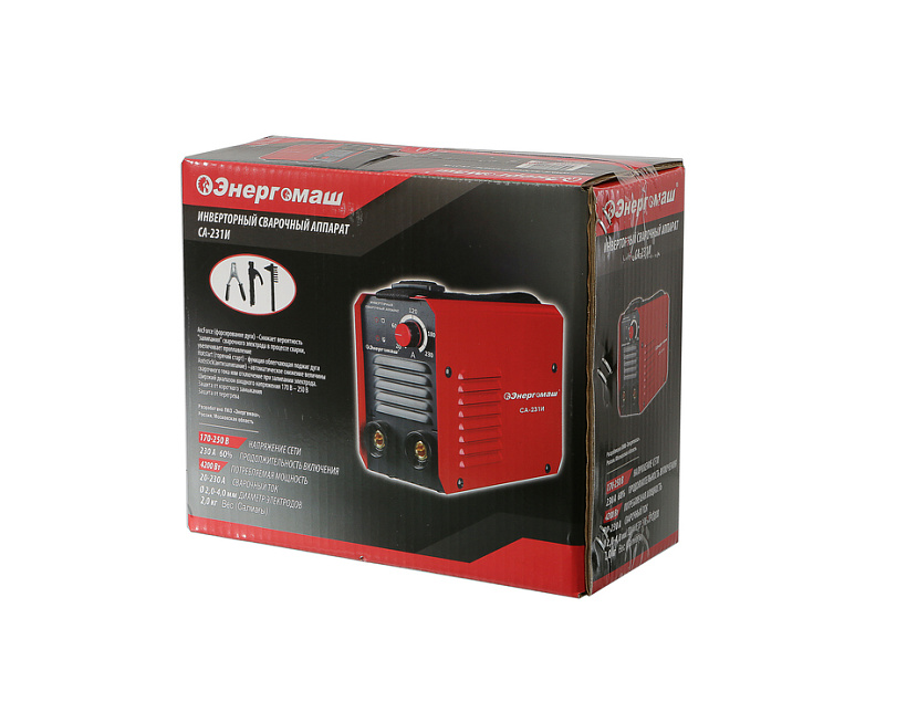 Сварочный инвертор Энергомаш СА-231И — компактный производительный аппарат с простым управлением и универсальным подключением.