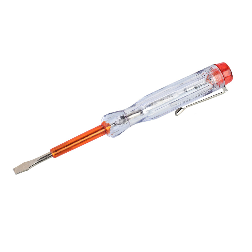 Рукоятка отверток-индикаторов изготовлена из прозрачной ацетилцеллюлозы и хорошо лежит в руке. На рукоятке отвертки-индикатора 1040-02-VT присутствует крепление к карману или ремню для более удобной переноски. Стержень выполнен из высококачественной стали и покрыт изоляцией по всей длине, имеет прямое жало.