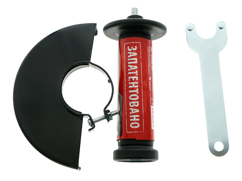 Гайки для крепления диска, комплект щеток, дополнительная рукоятка, ключ, защитный кожух в комплекте.