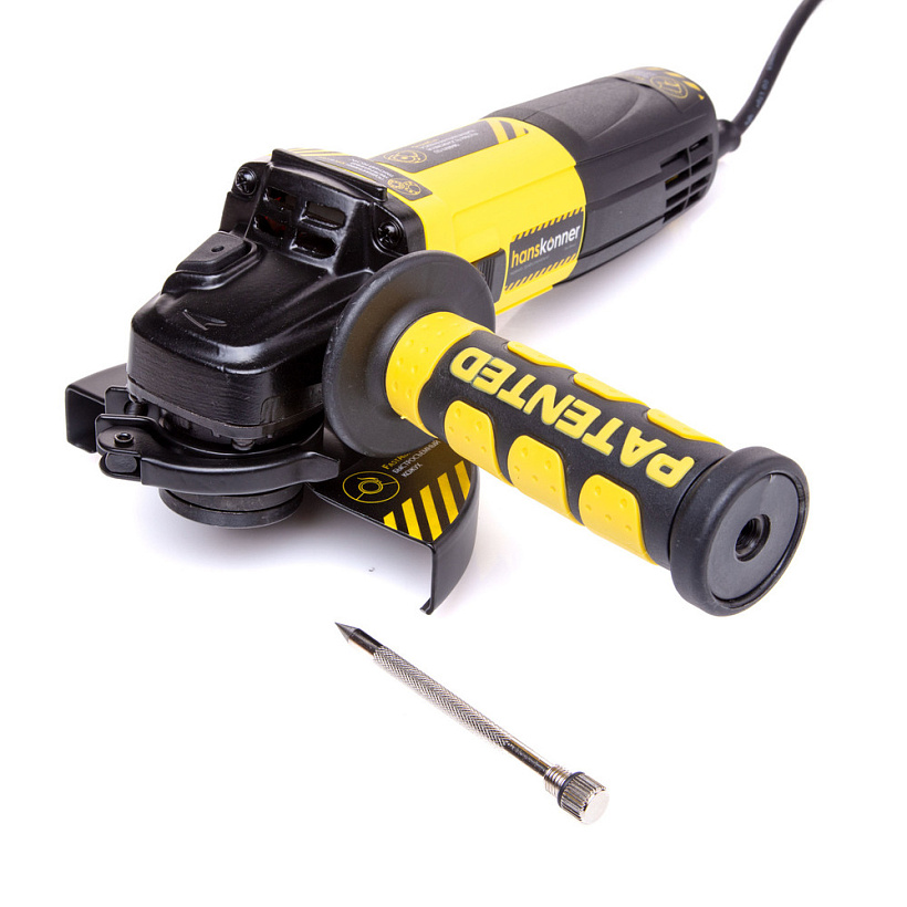 Hanskonner HAG9012TЕS – компактная универсальная болгарка (УШМ) под рабочий диаметр диска 125 мм. Обладает оптимальными массово-габаритными показателями и выверенными пропорциями: малый диаметр корпуса гарантирует максимальное удобство хвата, нейтральный центр тяжести позволяет уверенно контролировать инструмент в процессе работы даже одной рукой, низкопрофильный корпус редуктора клиновидной формы облегчает работу в местах с трудным доступом. Главная особенность модели – наличие блока константной электроники EPM (Electronic Power Manager), который обеспечивает поддержание стабильной частоты вращения на валу шпинделя, препятствуя падению оборотов под нагрузкой. Применение данной опции позволяет повысить производительность работы в среднем на 20%. К числу достоинств Hanskonner HAG9012TЕS стоит отнести и систему плавного пуска – она снижает пусковые нагрузки на двигатель и предотвращает рывок инструмента в момент включения, а также электронную регулировку оборотов (4000 – 10000 об / мин), благодаря которой достигается оптимальный подбор частоты вращения в зависимости от типа используемой оснастки и обрабатываемого материала .Инструмент оснащен мощным 1100 Вт электромотором со специальным термостойким покрытием и дополнительной защитой от пыли и абразивных частиц, усиленным редуктором с шестернями, подверженными закалке, а также, фирменными пылезащищенными подшипниками C&U – все это обеспечивает достаточный запас по надежности. Сетевой кабель имеет резиновую изоляцию, что позволяет сохранить его гибкость и эластичность в условиях низких температур, а четырехметровая длина кабеля обеспечивает рабочую зону площадью до 50 квадратных метров, исключая необходимость задействовать дополнительный сетевой удлинитель. Модель проста в эксплуатации и обслуживании. Снабжена быстросъемным защитным кожухом, надежно фиксирующимся при помощи специального зажимного рычага, за счет чего возможна быстрая смена положения кожуха без помощи вспомогательного инструмента, а также удобной патентованной рукоятью со специальным твердосплавным карандашом для нанесения разметки на поверхности любой сложности, включая ржавые, влажные и маслянистые. Комплектуется штатным пластмассовым кейсом для удобства хранения и транспортировки.