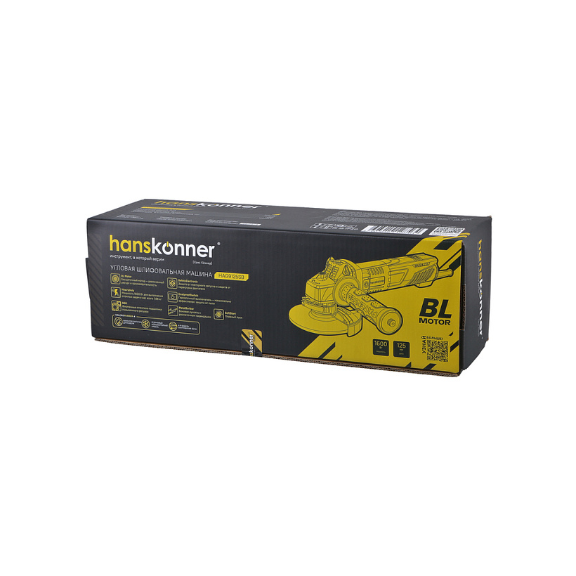 Hanskonner HAG9125SB – компактная маневренная болгарка (УШМ) под рабочий диаметр диска 125 мм. Обладает оптимальными массогабаритными показателями и выверенными пропорциями: малый диаметр корпуса гарантирует максимальное удобство хвата, нейтральный центр тяжести позволяет уверенно контролировать инструмент в процессе работы даже одной рукой, корпус редуктора клиновидной формы облегчает работу в местах с трудным доступом. Инструмент оснащен одним из самых мощных в своем классе 1600 Вт бесщеточным электромотором HeavyDuty, характеризующимся высокой производительностью и долговечностью – отлично противостоит кратковременным перегрузкам и не склонен к перегреву. Наличие системы плавного запуска SoftStart предотвращает резкие рывки при включении, снижает нагрузку на электродвигатель и обеспечивает более безопасное и комфортное начало работы. Важной особенностью модели Hanskonner HAG9125SB является защита от повторного пуска SafetyElectronic исключающая случайное включение болгарки после восстановления подачи питания. Кроме того, инструмент получил высококачественные фирменные подшипники NSK, герметичный выключатель DustproofSwitch, максимально защищенный от пыли и абразива, а также длинный четырехметровый кабель 4VelcroRubber с резиновой изоляцией, гарантирующей его гибкость и эластичность в условиях низких температур. Модель проста в эксплуатации и обслуживании. Снабжена быстросъемным защитным кожухом FastAdapt, фиксирующимся посредством специального зажимного рычага, за счет чего возможна быстрая смена положения кожуха без помощи вспомогательного инструмента, а также удобной патентованной рукоятью со специальным твердосплавным карандашом MetalScriber для нанесения разметки на поверхности любой сложности, включая ржавые, влажные и маслянистые.