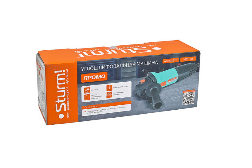 Угловая шлифовальная машина Sturm AG9012TF — мощный и компактный электроинструмент для шлифования, зачистки и резки поверхностей. Данная модель обладает выгодным соотношением диаметра диска в 125 мм с мощностью электродвигателя, что составляет 1000 Вт.