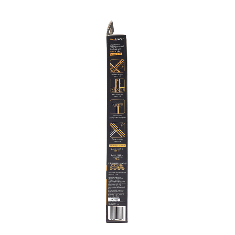 Угольник 350мм, уровень, транспортир, чертилка, hanskonner