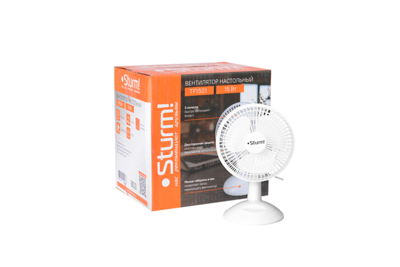 Современный настольный вентилятор Sturm! станет незаменимым помощником в душном офисе и в любом малогабаритном пространстве. Прибор отличается компактностью и легкостью. Его можно поставить даже на небольшую поверхность - стол, подоконник, полку.