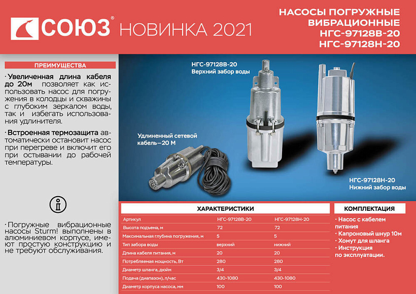 Насос вибрационный погружной СОЮЗ НГС-97128В-20