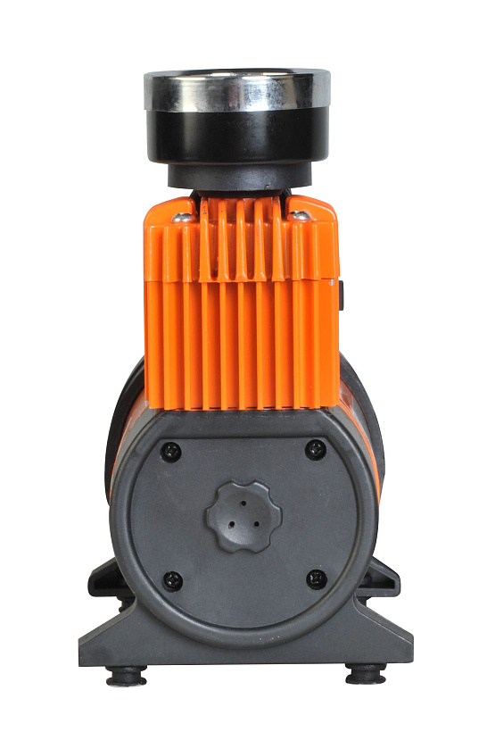 Благодаря металлическому цилиндру с ребристым радиатором охлаждения, стальному поршню и производительному двигателю обеспечивается более продолжительная работа компрессора, от 10 до 30 минут без перерыва, что позволяет накачивать изделия большого размера.