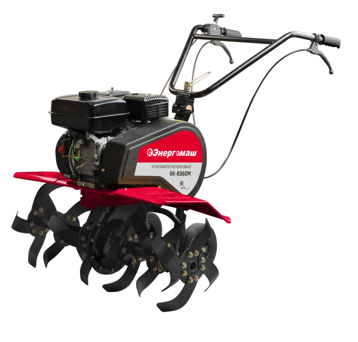 Благодаря защитному экрану обеспечивается безопасность работ, грунт, вылетающий из-под фрез культиватора, не попадет на двигатель и оператора.