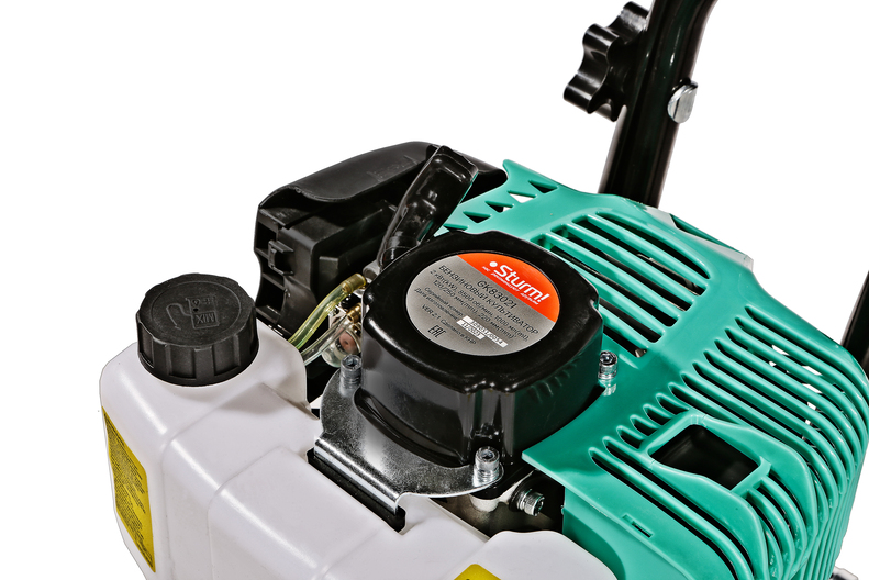 Двигатель с хонингованной и покрытой твёрдым хромом поршневой группой прекрасно сбалансирован, стабильно работает во всех положениях без потери мощности и имеет низкий расхода топлива, поэтому культиватор способен уверенно работать на крутых склонах.