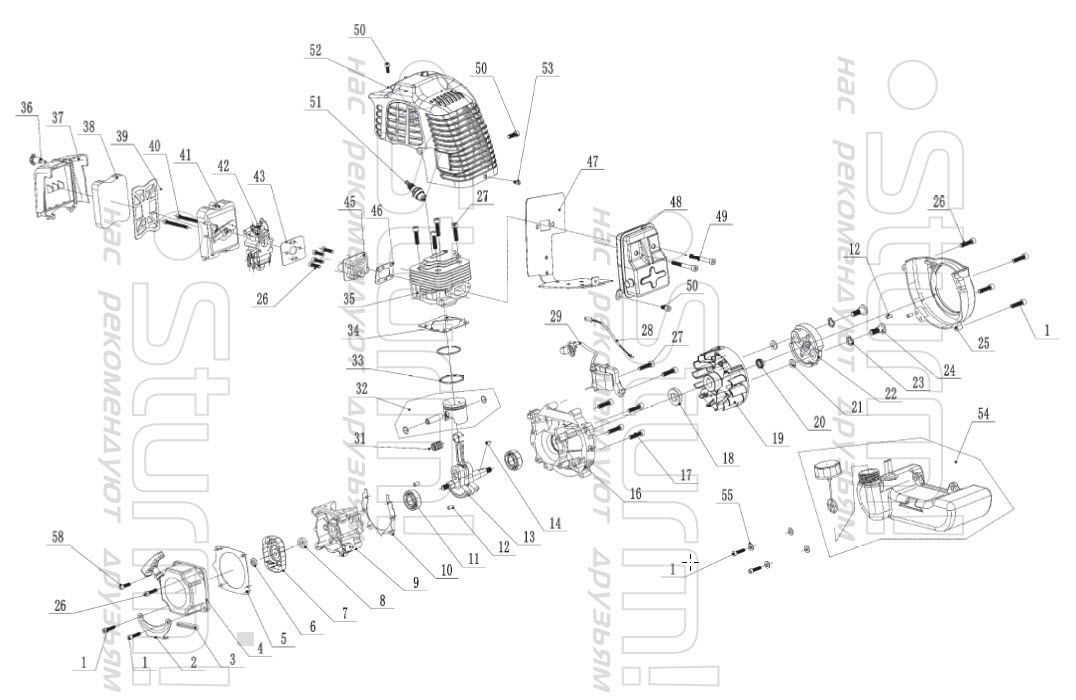 Постоянную готовность к работе поддерживает возвратный механизм стартера, автоматически приводя его в пусковое положение для быстрого последующего запуска.