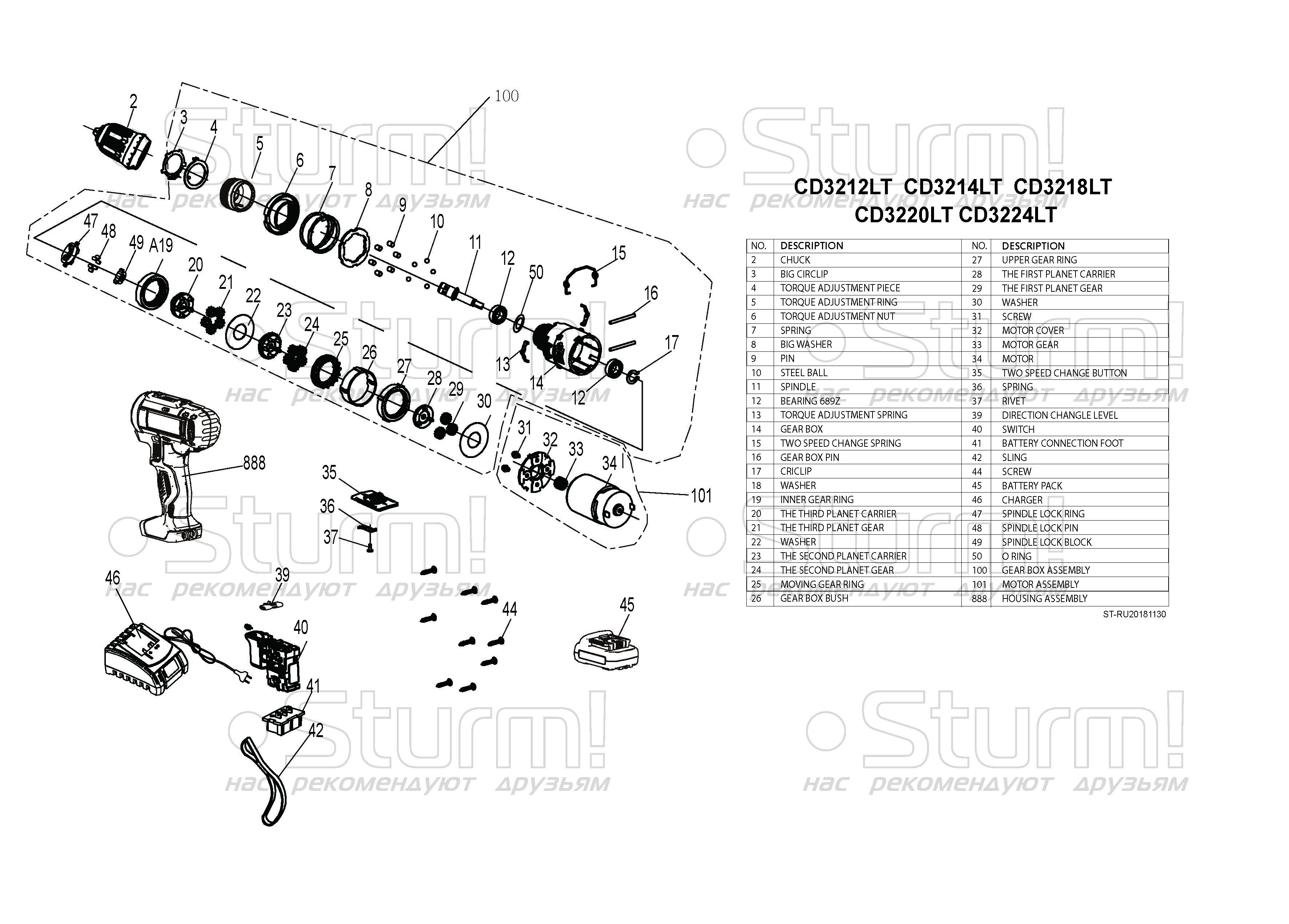 Прочный кейс, крепление для подвеса, карабин-защелка и набор бит в комплекте.